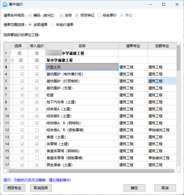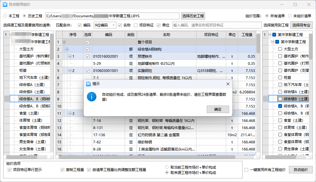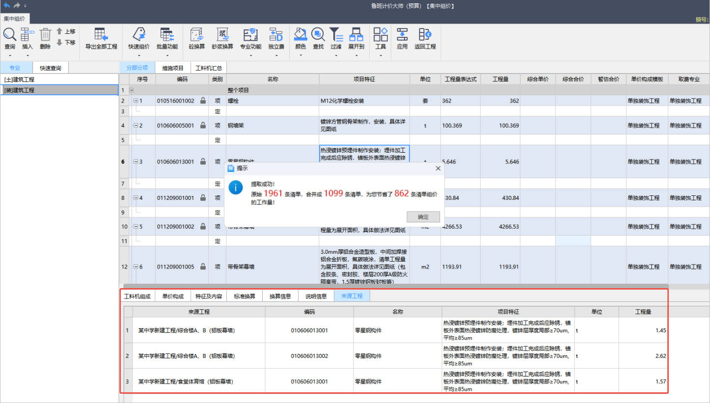 集中组价功能,智能去重,相同清单组价一次即可多工程复用,3天工作量缩至0.5天,组价效率翻倍。