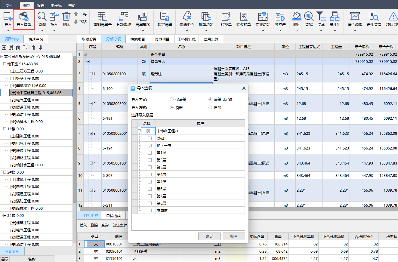 鲁班算量文件直通计价端,直接勾选导入楼层、导入方式即可导入,免手动导出算量做法表格。