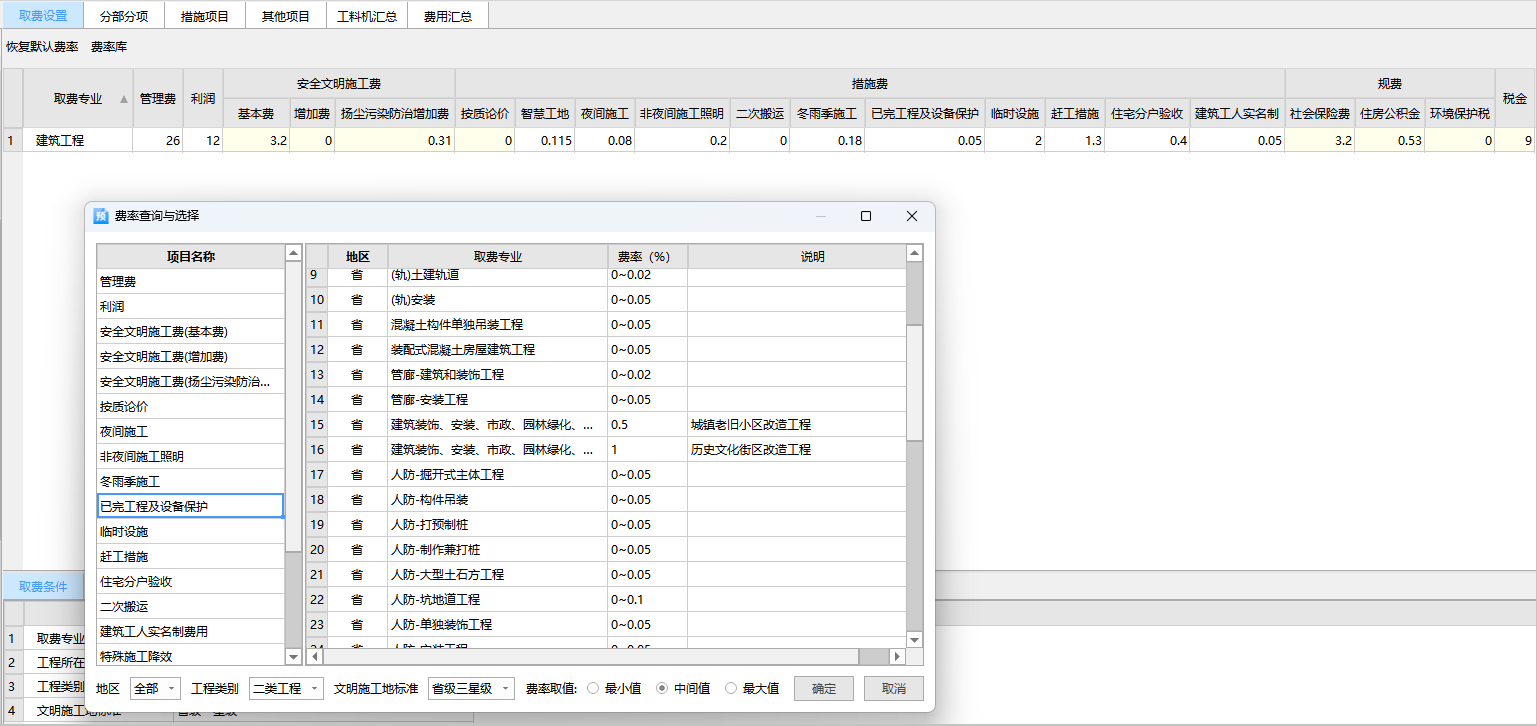 费率查询与集中调整,支持按项目、专业或单位工程多级统调,查改灵活,合规更放心。
