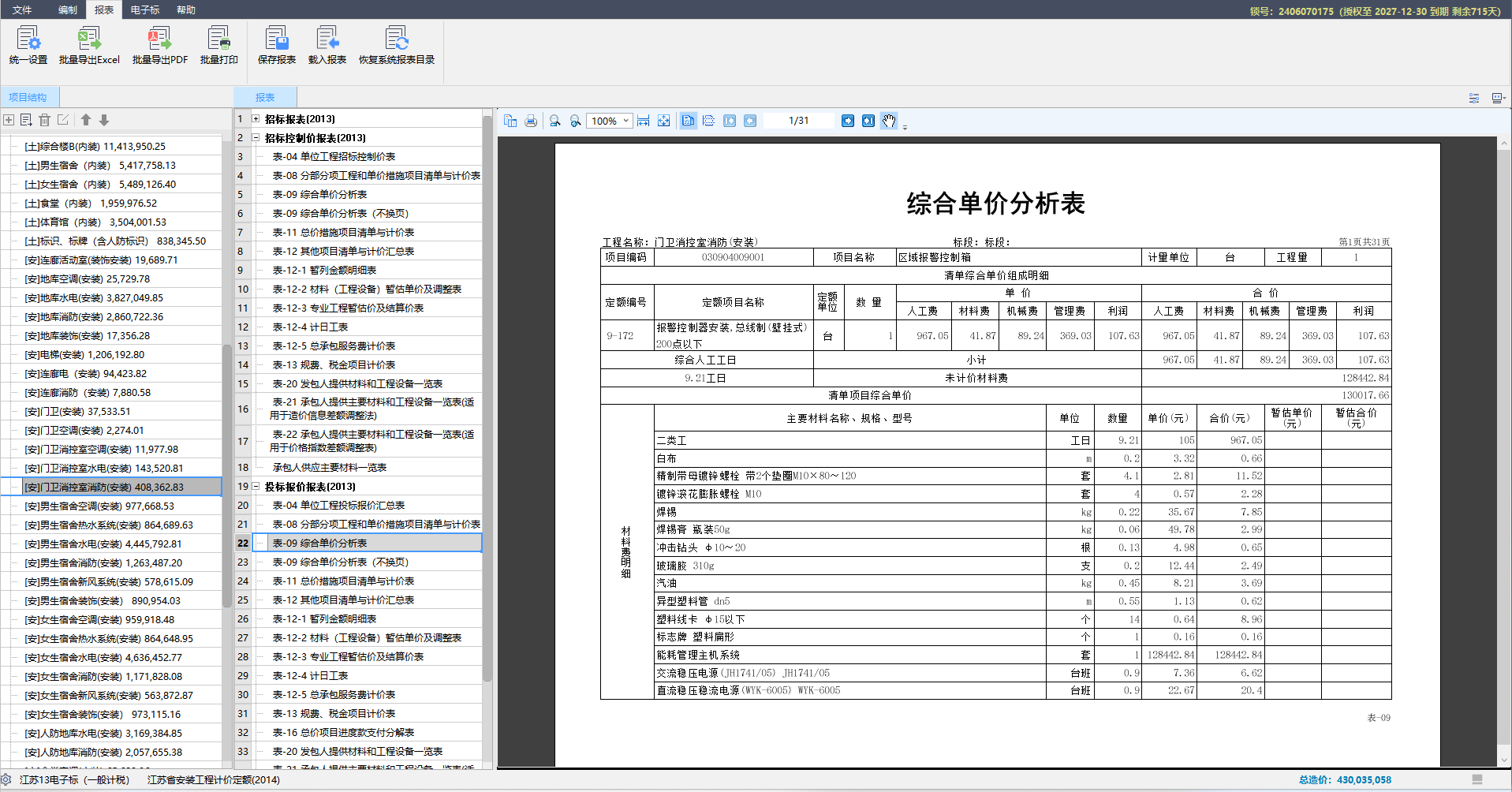软件内置多种报表供自由选用,支持批量导出 Excel、PDF格式及批量打印,适配报审、归档等多样场景。