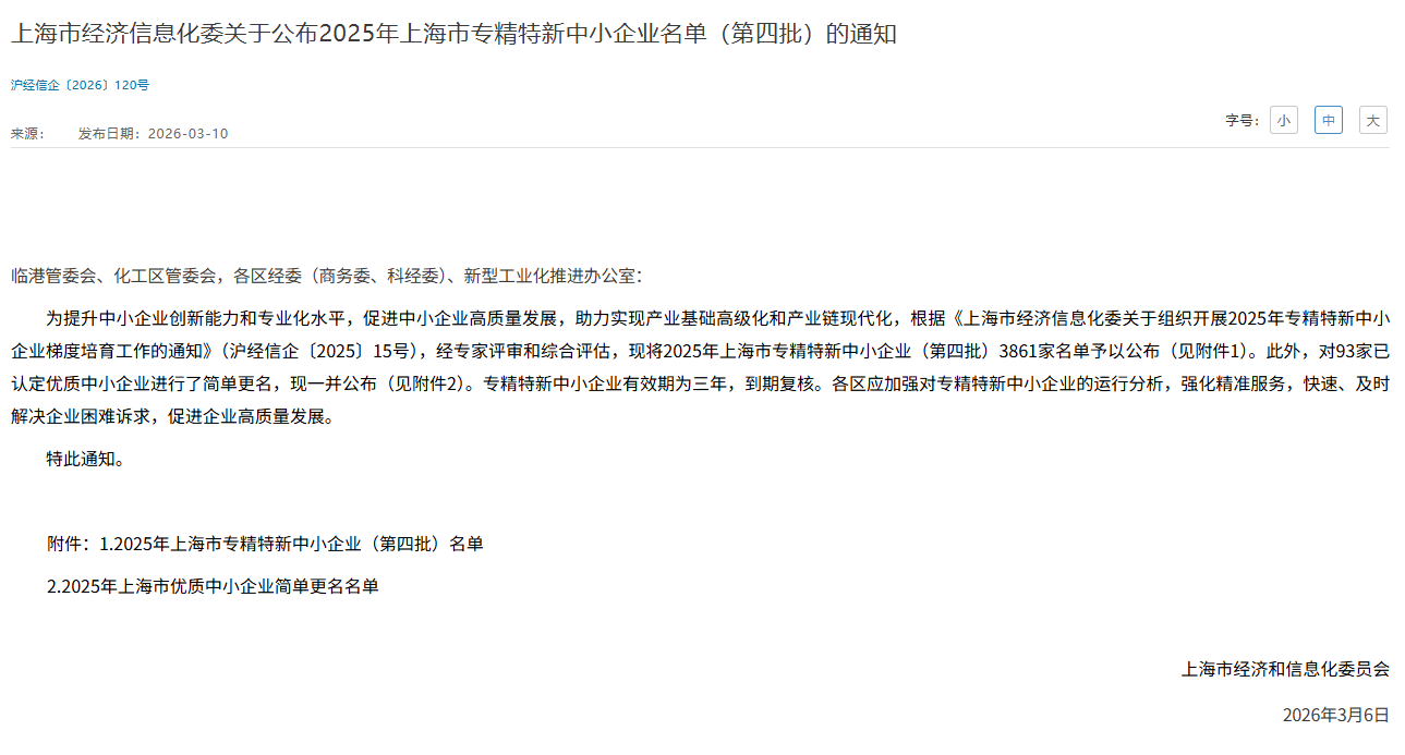 近日,上海市经济和信息化委员会公布2025年度上海市“专精特新”企业名单,鲁班软件股份有限公司凭借多年在建设数字化领域的技术积淀、创新实践与行业贡献等方面的突出表现成功入选,标志着公司在“专业化、精细化、特色化、新颖化”方面的发展成果获得权威认可。